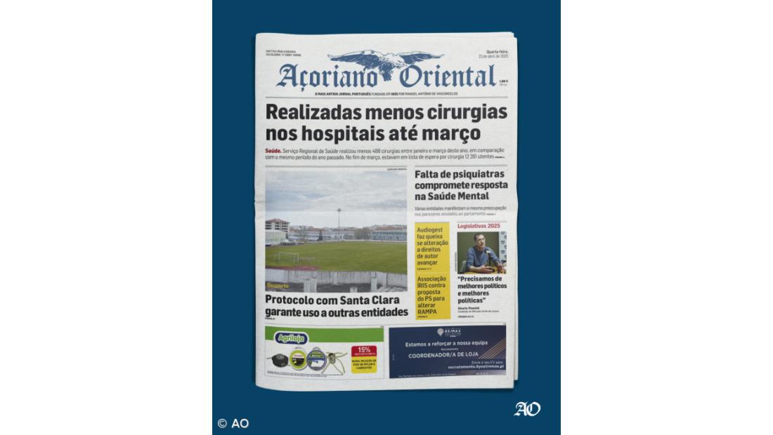 Nesta edição, o AO avança que o protocolo com o Santa Clara garante uso do campo do Lajedo por outras entidades, e noticia que a falta de psiquiatras compromete resposta na Saúde Mental, que a Audiogest admite fazer queixa se alteração a direitos de autor avançar, e que a associação ÍRIS está contra proposta do PS para alterar a RAMPA.