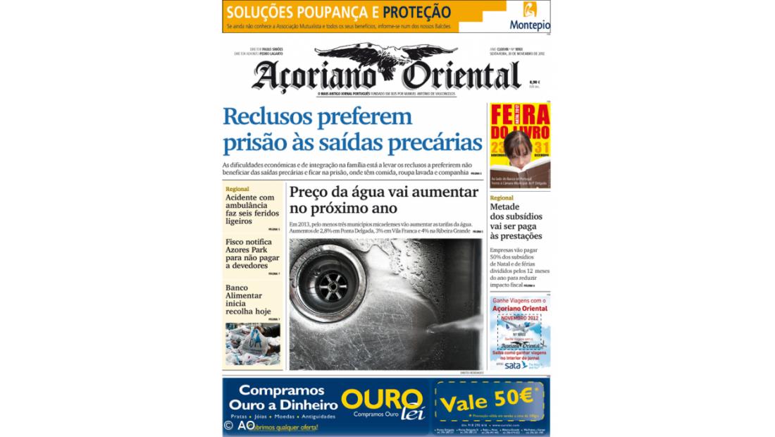 Faz ainda capa no jornal diário, os títulos "Preço da água vai aumentar no próximo ano", "Metade dos subsídios vai ser paga às prestações", "Acidente com ambulância faz seis feridos", "Fisco notifica Azores Park para não pagar a devedores" e "Banco Alimentar inicia recolha hoje".