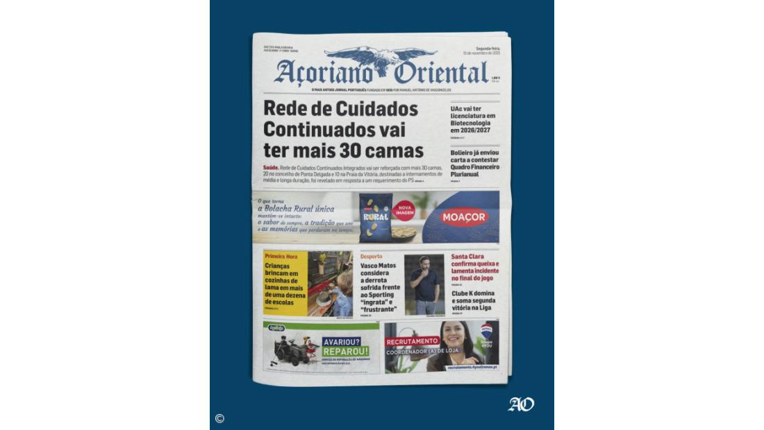 Ainda nesta edição: "UAc vai ter licenciatura em Biotecnologia em 2026/2027", "Bolieiro já enviou carta a contestar Quadro Financeiro Plurianual" e "Crianças brincam em cozinhas de lama em mais de uma dezena de escolas".