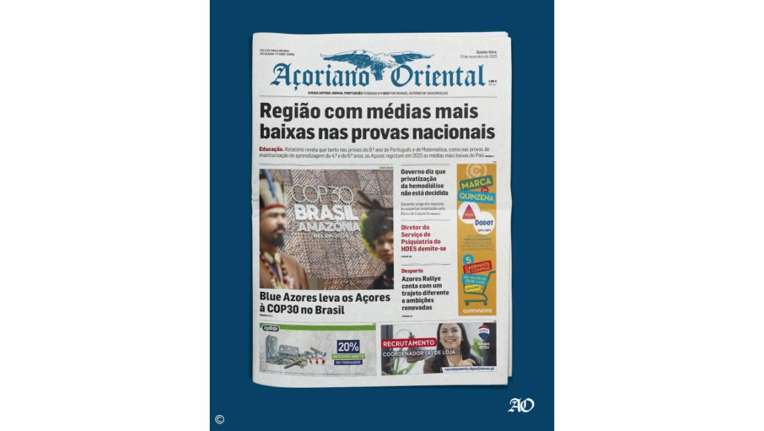 Ainda nesta edição: "Blue Azores leva os Açores à COP30 no Brasil", "Governo diz que privatização da hemodiálise não está decidida" e "Diretor do Serviço de Psiquiatria do HDES demite-se".