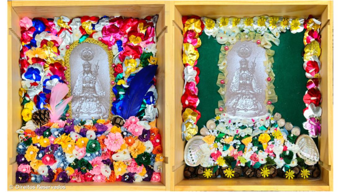 Nestes registos foram utilizados materiais variados tais como “caixas de vinho, papel de seda, veludo, pérolas, contas de plástico, búzios, escamas de peixe, conchas e vegetação natural”.