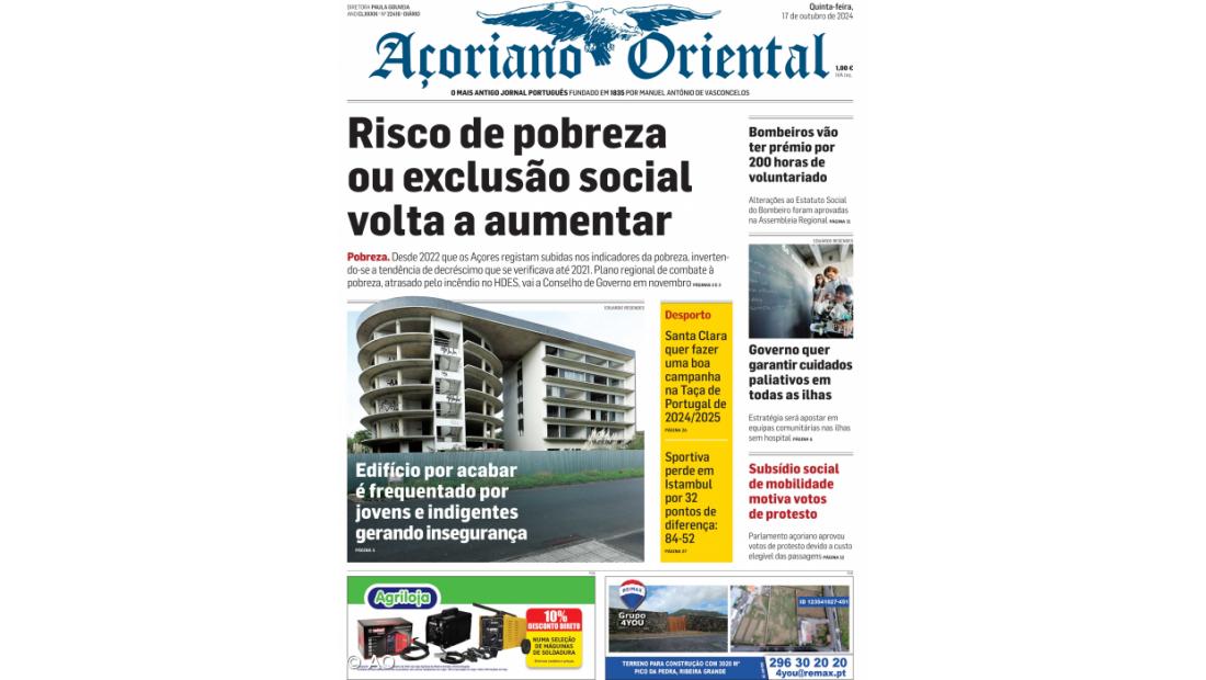 Os mais recentes estudos sobre a exclusão social e o novo plano de combate à pobreza que o Governo Regional quer implementar estão em destaque no Açoriano Oriental de quinta-feira, 17 de outubro de 2024.