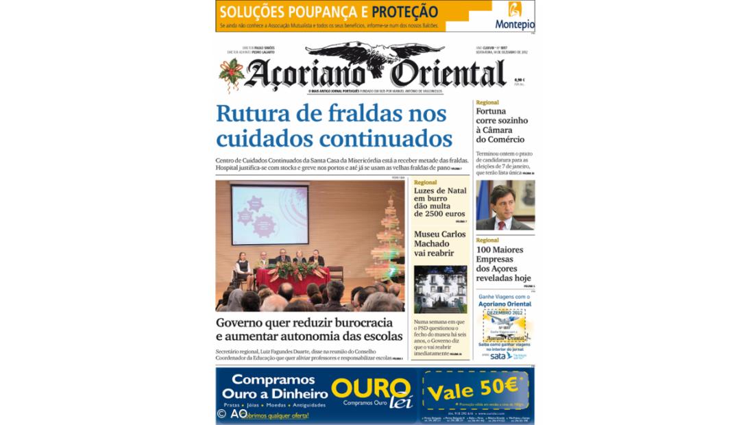 "Rutura de fraldas nos cuidados continuados" é a manchete do Açoriano Oriental