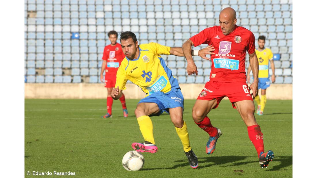 Bola metida na pequena área por Bijou, onde surgia ao segundo poste Hugo Monteiro mas helder Godinho desviou com uma sapatada para canto