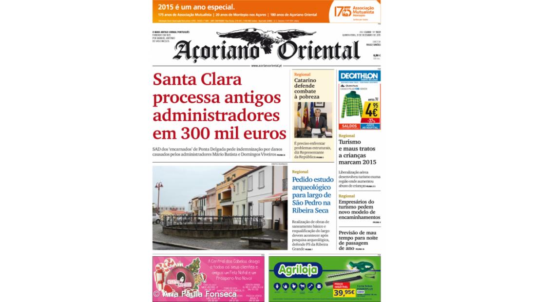 Na primeira página chamada ainda para a mensagem de Ano Novo do Representante da República onde defende o combate à pobreza. Turismo e maus tratos a crianças marcam 2015; Empresários do turismo pedem novo modelo de encaminhamentos e Previsão de mau tempo para noite de passagem de ano, são outros títulos de capa