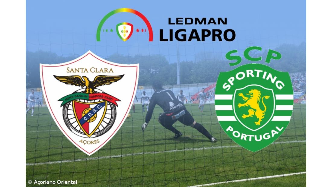 Pontapé de saída para o Sporting B. Na primeira parte o Santa Clara ataca a baliza sul do Estádio de São Miguel