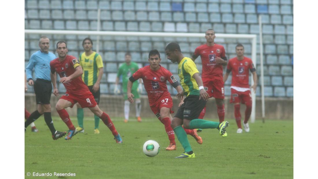 Raça de João Ventura a ganhar o ressalto por duas vezes e sem contemplações a rematar forte com a bola a sair muito junto à trave da baliza de Cláudio Ramols que ficou pregado no relvado