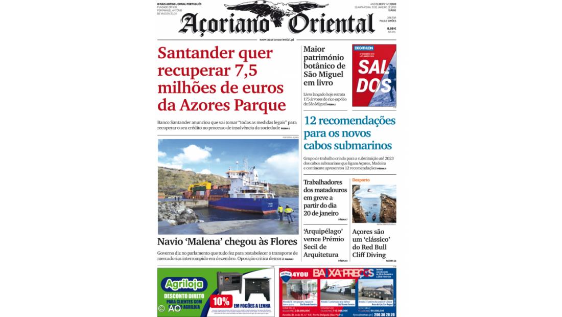 "12 recomendações para os novos cabos submarinos" e "Arquipélago vence Prémio Secil de Arquitetura" são outros destaques do jornal.