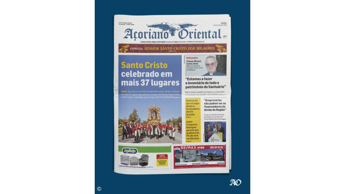 "Santo Cristo celebrado em mais 37 lugares" é a manchete desta edição especial do Açoriano Oriental dedicada às Festas em honra do Senhor Santo Cristo dos Milagres.