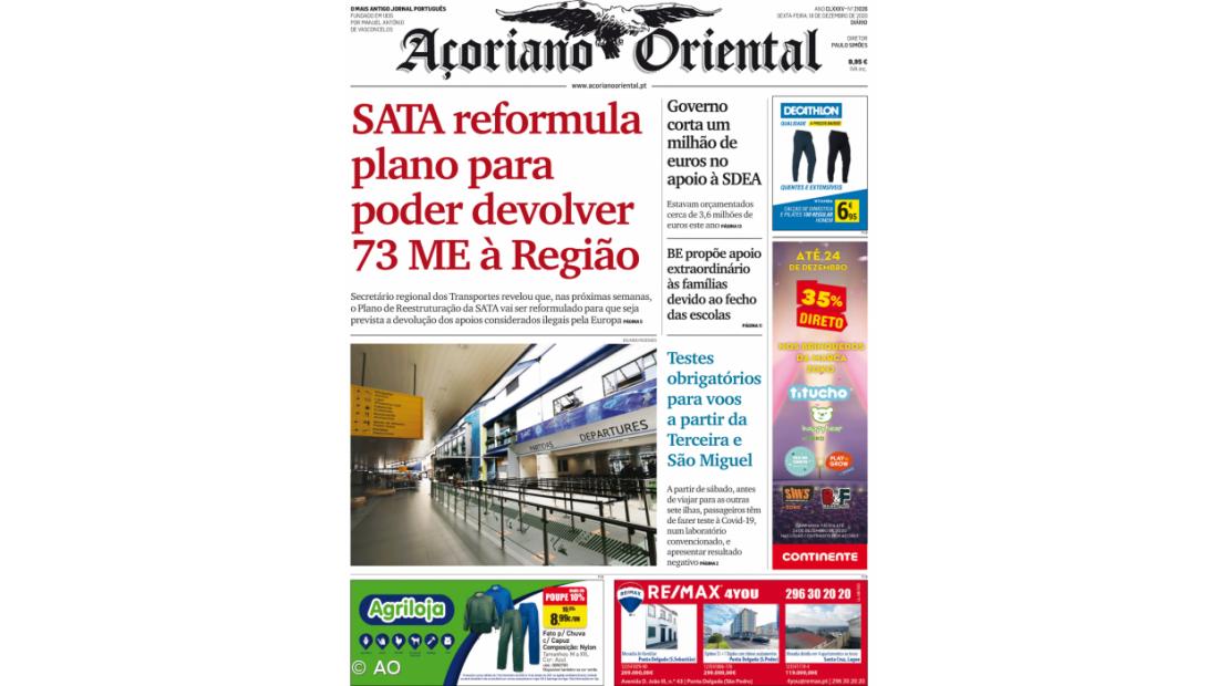 As notícias de que o Governo retirou um milhão de euros à SDEA, e de que o BE propõe um apoio extraordinário às famílias devido ao fecho de escolas são outros dos assuntos que pode ler na edição impressa de hoje.
