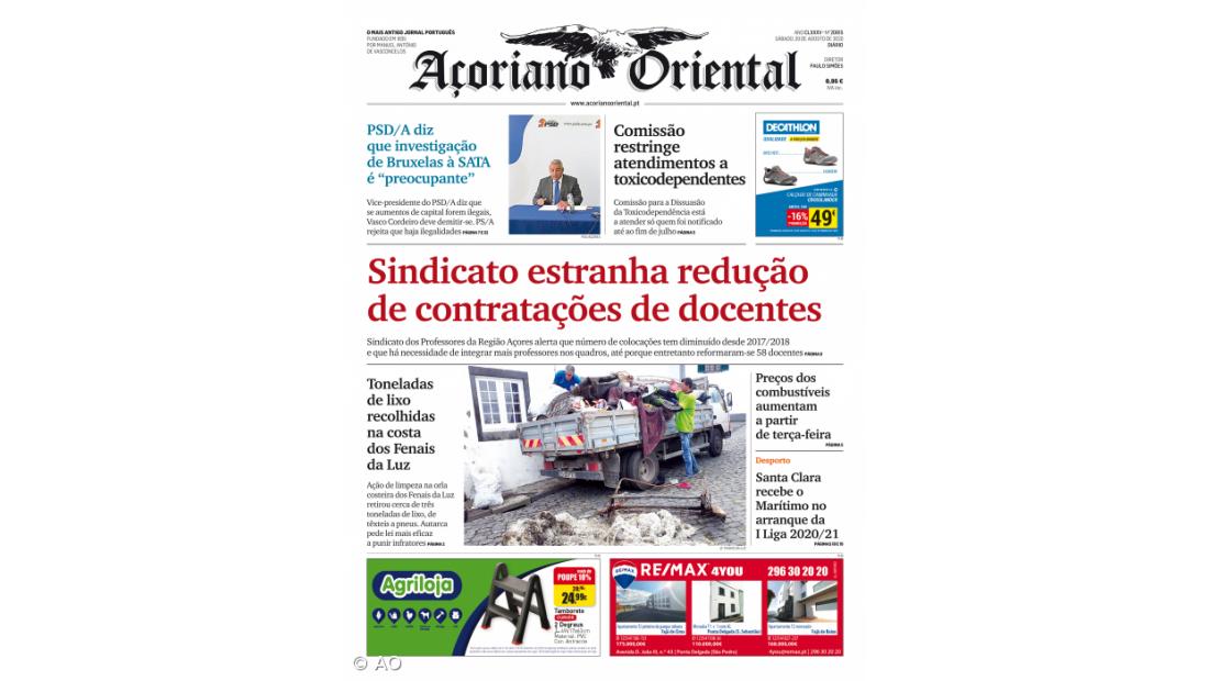 As declarações do PSD/A sobre a investigação de Bruxelas à SATA, a notícia de que a Comissão para a Dissuasão da Toxicodependência está a atender apenas toxicodependentes notificados até ao fim de julho e o aumento dos preços dos combustíveis são outros dos destaques do jornal na primeira página, onde o Desporto destaca o sorteio para a I Liga da época 2020/2021.