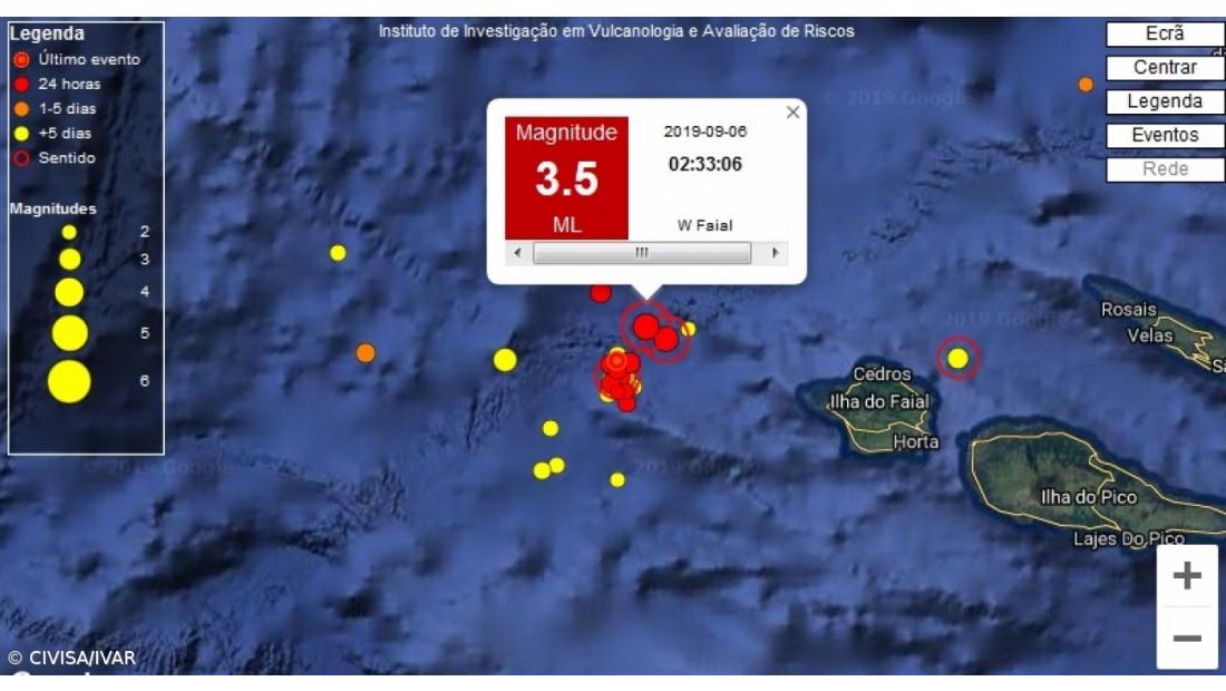 O Centro de Informação e Vigilância Sismovulcânica dos Açores (CIVISA) registou,
