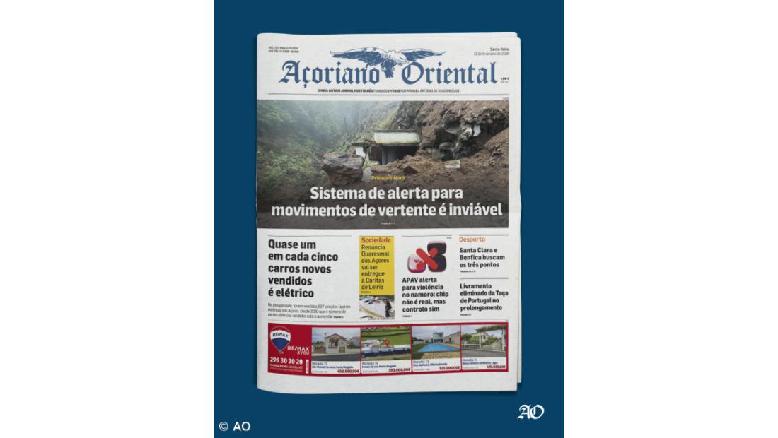 A impossibilidade de criar um sistema de alerta para movimentos de vertente que abranja toda a Região está em destaque no Açoriano Oriental de sexta-feira, 13 de fevereiro de 2026.
