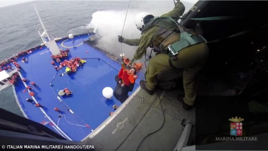 Às 21.00 de Lisboa, a marinha italiana informava que tinham sido resgatadas 190 das 478 pessoas a bordo, registando-se um morto - um passageiro que se atirou ao mar juntamente com a sua mulher, que foi retirada das águas.