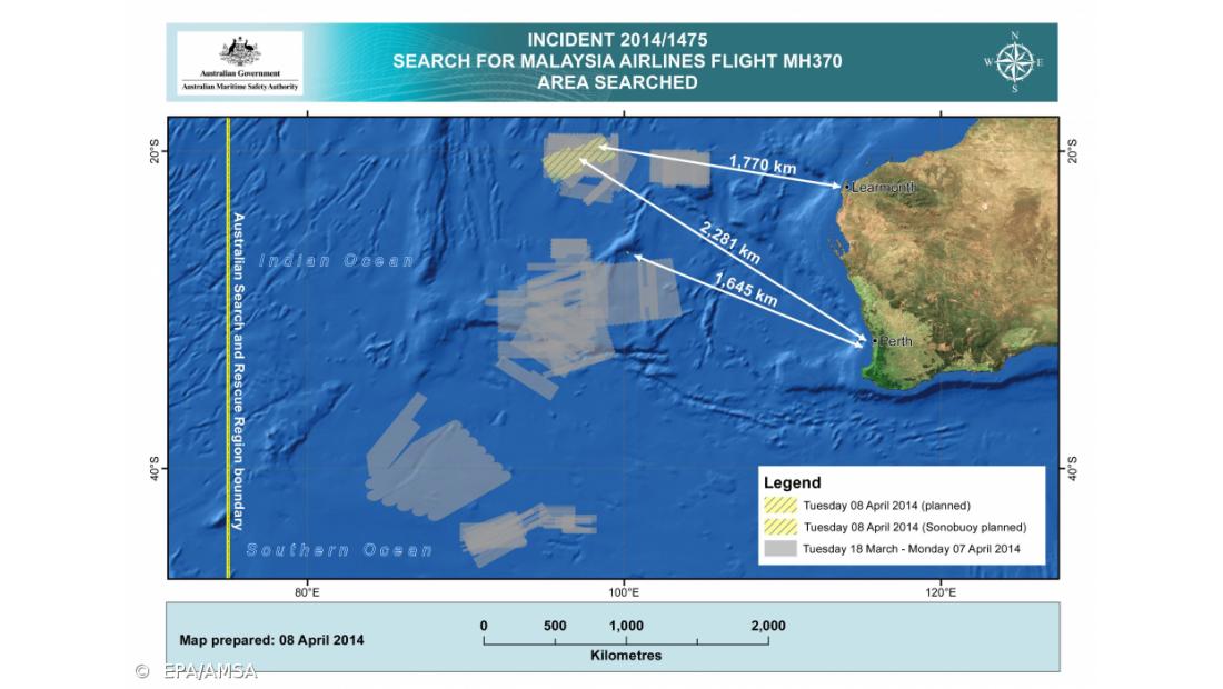 As equipas presentes na zona de busca, no sul do Índico, situada a 1.680 quilómetros a oeste da costa australiana, já por várias vezes detetaram sinais que equiparam com os que deveriam ser emitidos pelas caixas negras do Boeing 777-200 desaparecido com 239 pessoas em 08 de março.
