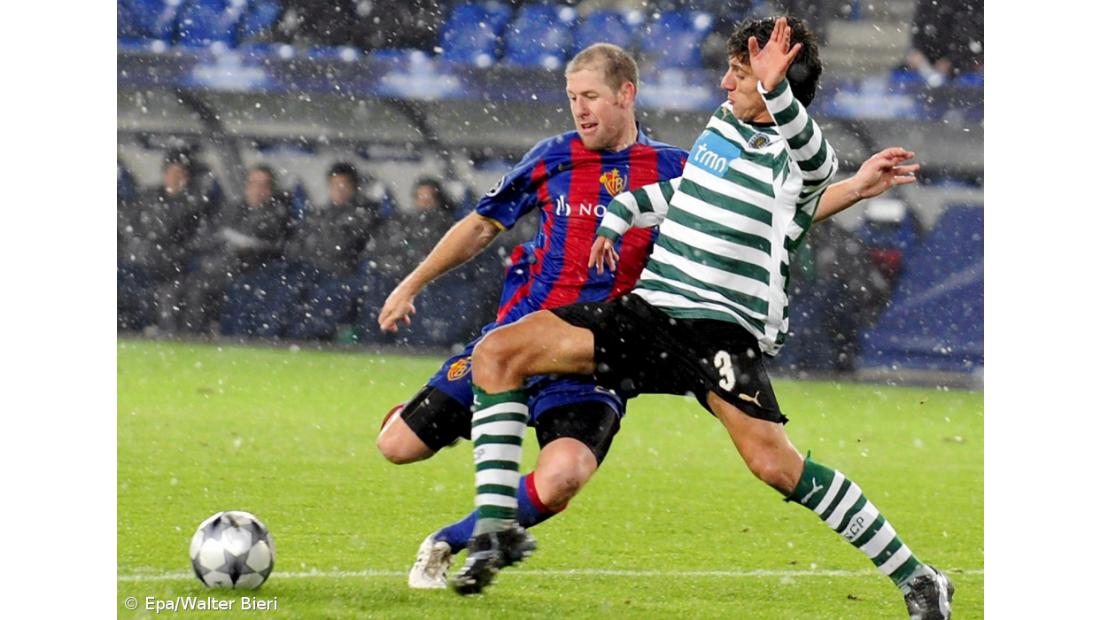 Com alguma neve a cair em St. Jakob-Park, estádio onde a selecção portuguesa foi eliminada no Euro2008, o Sporting "aqueceu" cedo a partida, com Derlei, aos cinco e 15 minutos, a aparecer solto na área suíça mas a não ter arte nem engenho para bater o guardião Costanzo.