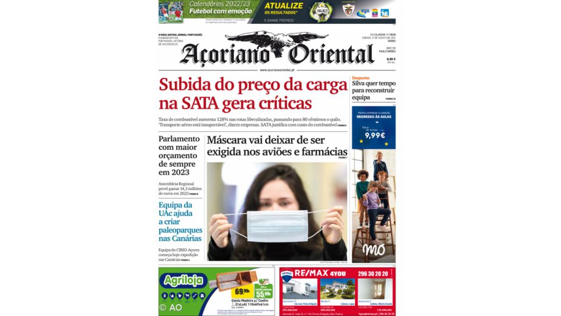 A taxa de combustível para a carga vai aumentar 128% em setembro, nas rotas liberalizadas da SATA para o continente e para a Madeira. O assunto, que está a gerar críticas dos empresários, está em destaque no Açoriano Oriental de sábado, 27 de agosto de 2022.