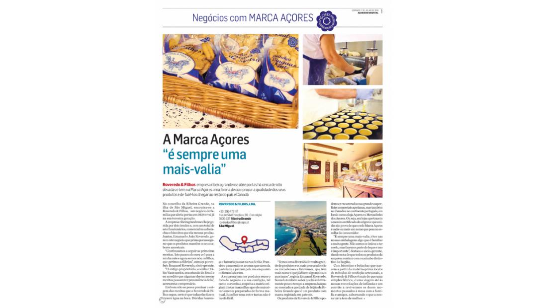 Negócios com Marca Açores apresentam as empresas Roveredo & Filhos, Cooperativa União Agrícola Florentina, Mercadinho dos Açores e Restaurante O Pescador.