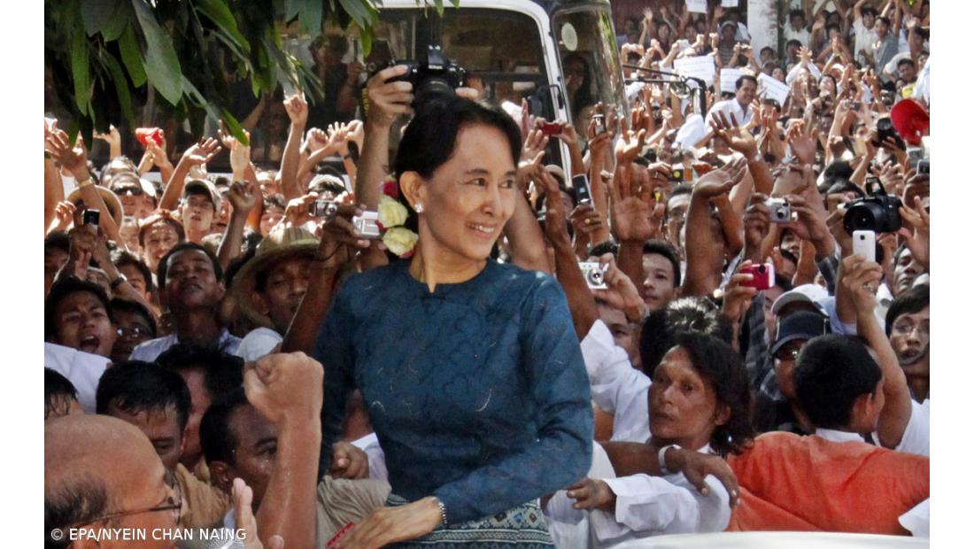 Aung San Suu Kyi esteve presa na Birmânia durante 15 dos últimos 21 anos.
