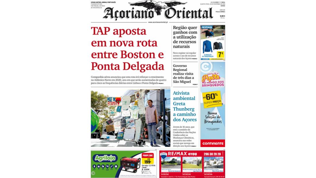 "TAP aposta em nova rota entre Boston e Ponta Delgada" é a manchete desta quarta-feira do Açoriano Oriental.
