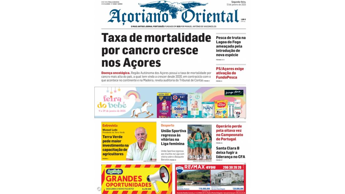 "Taxa de mortalidade por cancro cresce nos Açores" é a manchete da edição desta segunda-feira do Açoriano Oriental.