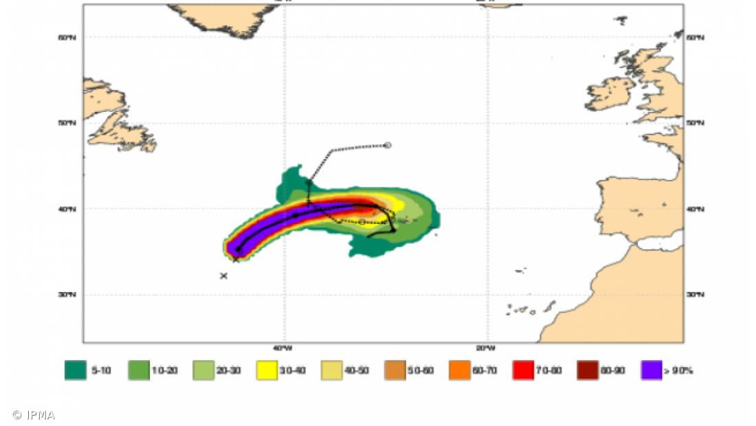 Em comunicado, o Instituto Português do Mar e da Atmosfera (IPMA) refere estar previsto que na sexta-feira, às 18h00, seja a altura em que a tempestade tropical “se encontre mais próximo do arquipélago" (130 quilómetros a norte do Corvo).