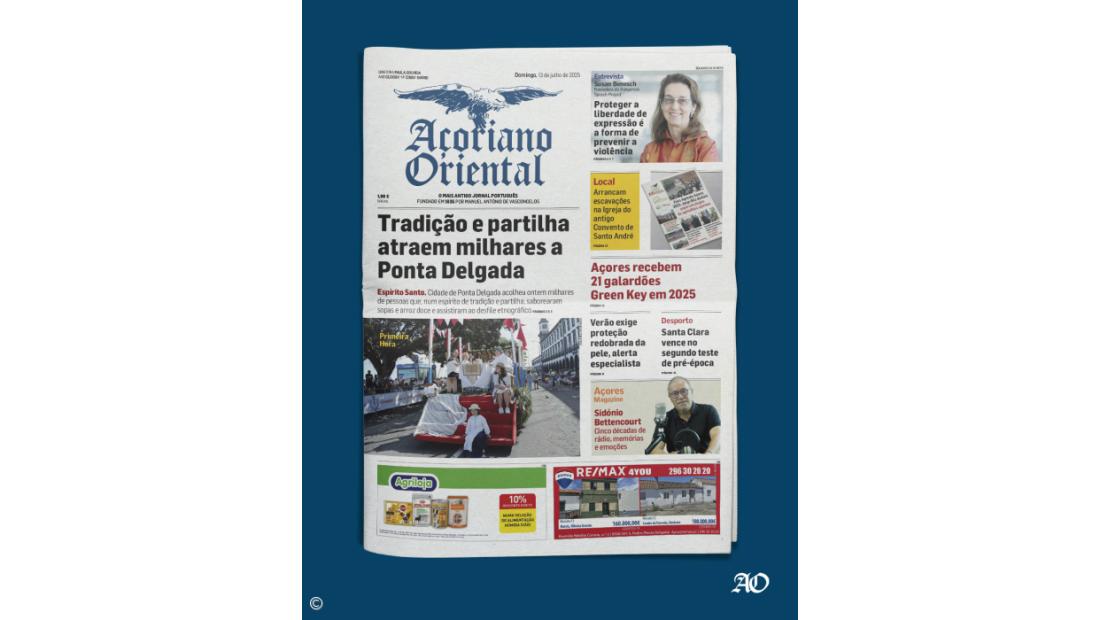 Ainda nesta edição: "Proteger a liberdade de expressão é a forma de prevenir a violência", "Arrancam escavações na Igreja do antigo Convento de Santo André", "Açores recebem 21 galardões Green Key em 2025" e "Verão exige proteção redobrada da pele, alerta especialista".