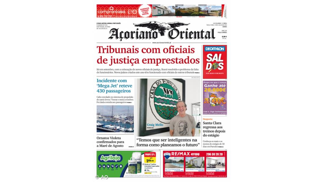 A falta de oficiais de justiça, que leva a que os novos juízos criados na Comarca dos Açores este ano estejam a funcionar até setembro com oficiais de justiça de outros tribunais, está em destaque no Açoriano Oriental de terça-feira, 23 de julho de 2019.