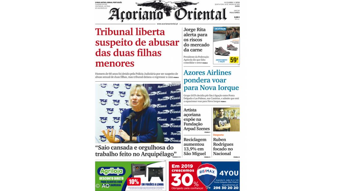 Açoriano Oriental desta quinta-feira destaca a notícia de um homem de 60 anos que foi detido pela PJ e liberto depois pelo Tribunal, tendo regressado a casa onde residem as filhas
