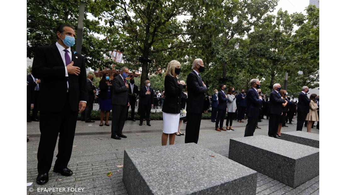 Biden estará no memorial do 11 de setembro, em Nova Iorque, onde este ano não se repetirá a tradição de ler os nomes das vítimas do ataque às Torres Gémeas, no âmbito das restrições da cerimónia por causa da pandemia de covid-19.