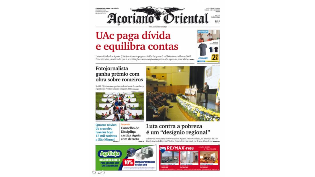"UAc paga dívida e equilibra contas" é a manchete do Açoriano Oriental
