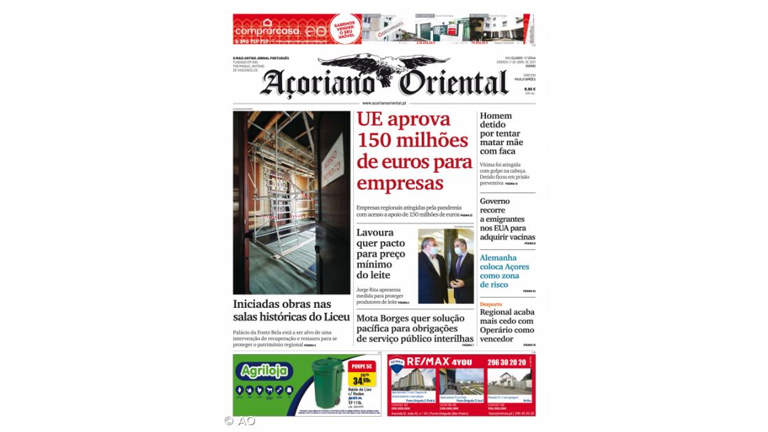 "Iniciadas obras nas salas históricas do Liceu", é o título do destaque fotográfico da capa do Açoriano Oriental.