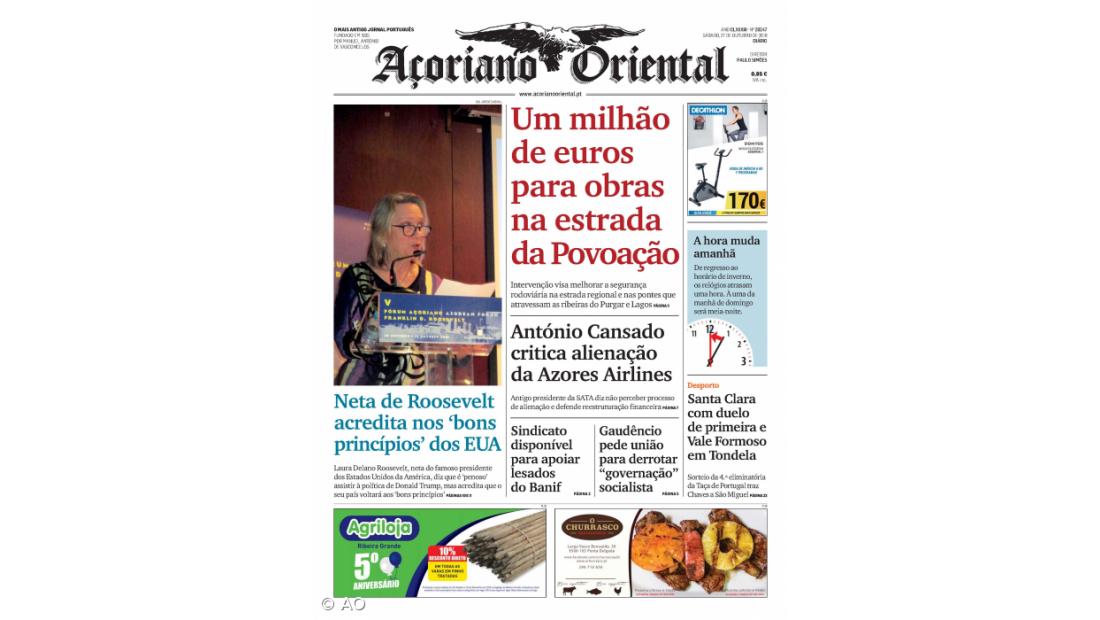 "Um milhão de euros para obras na estrada da Povoação" é a manchete da edição deste sábado do Açoriano Oriental