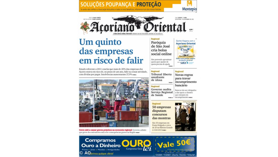 São feitas ainda chamadas na primeira página com os títulos: "Paróquia de São José cria bolsa social online", "Tribunal liberta assaltante de idosa", "Governo audita Serviço Regional de Saúde"; "Novas regras para incumprimento bancário" e "50 empresas disputam concusos de montras".