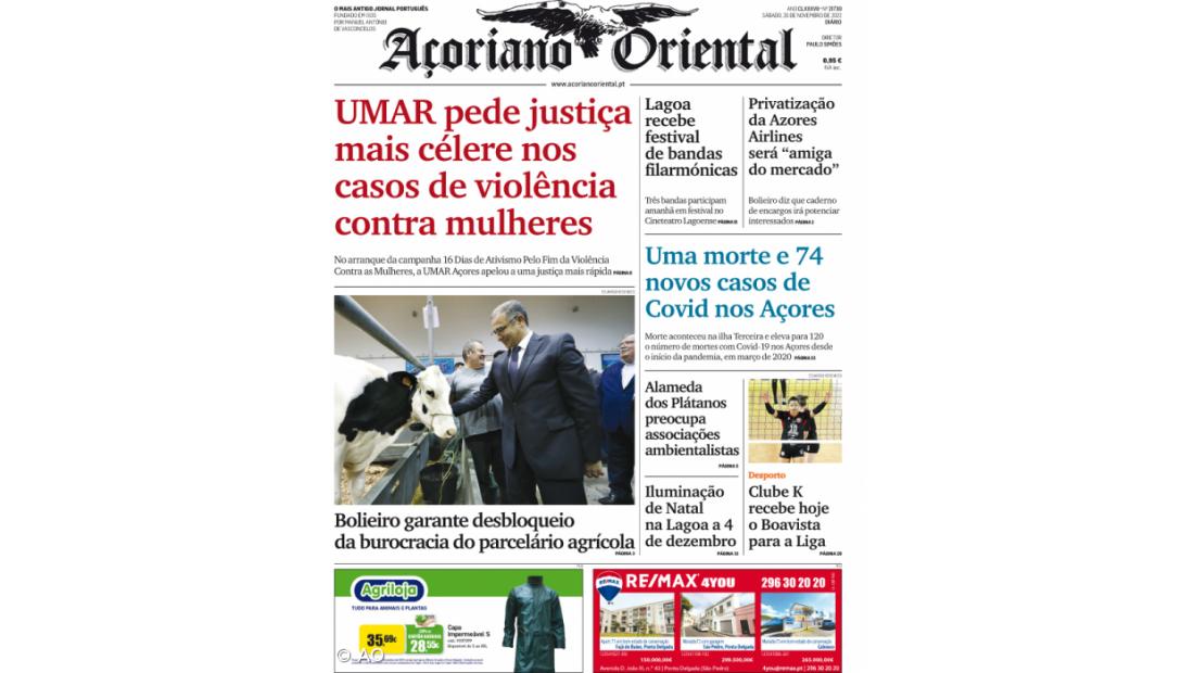 "UMAR pede justiça mais célere nos casos de violência contra mulheres" é a manchete do Açoriano Oriental