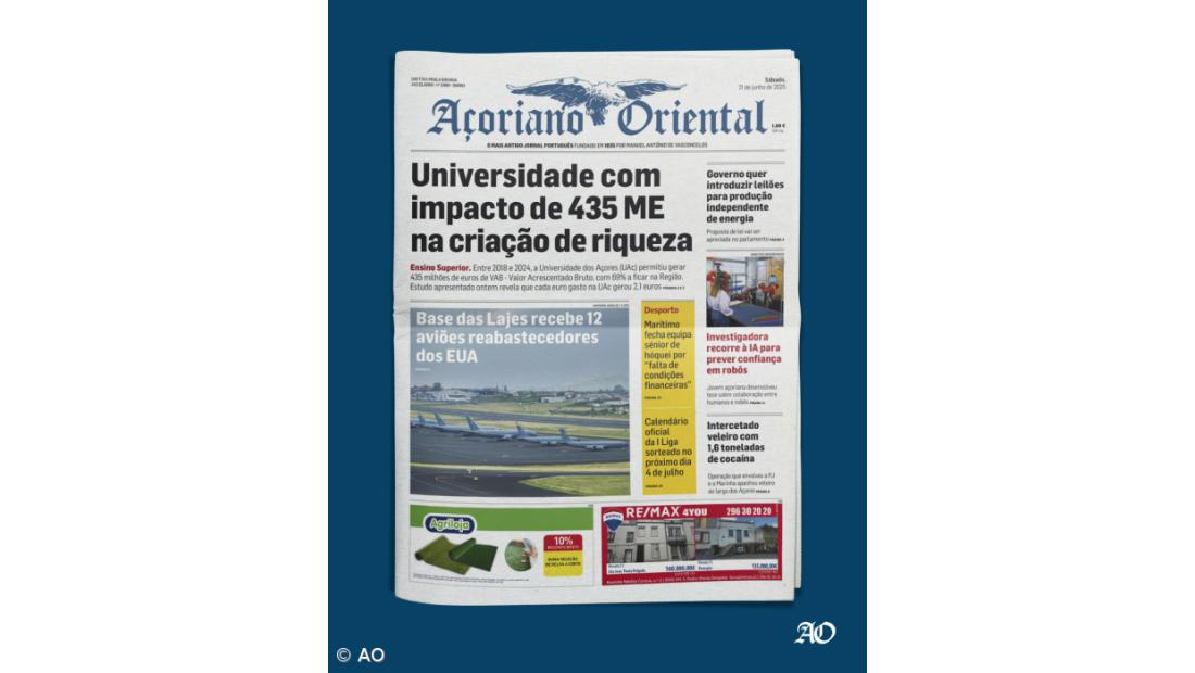 Nesta edição, o destaque fotográfico é para a movimentação de aviões dos EUA na Base das Lajes, noticiando-se ainda que o Governo quer introduzir leilões para produção independente de energia, e que veleiro foi intercetado ao largo dos Açores com 1,6 toneladas de cocaína. A investigação de uma jovem açoriano sobre a relação de confiança entre humanos e robôs é outro dos assuntos do jornal deste sábado.