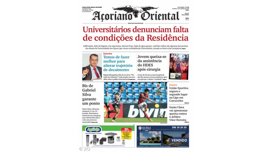 O Desporto está também destaque na primeira página, com a fotografia reservada ao empate do Santa Clara frente ao Boavista, e as notícias dedicadas ao União Sportiva e à queixa que o Santa Clara apresentou contra árbitro.