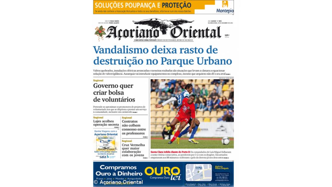 "Vandalismo deixa rasto de destruição no Parque Urbano" é a manchete do Açoriano Oriental