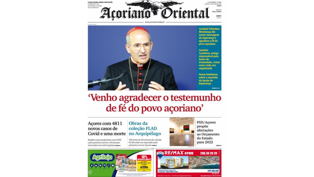 Edição de hoje do Açoriano Oriental destaca também o número de casos de Covid-19 detetados na última semana e as "Obras da coleção FLAD no Arquipélago".