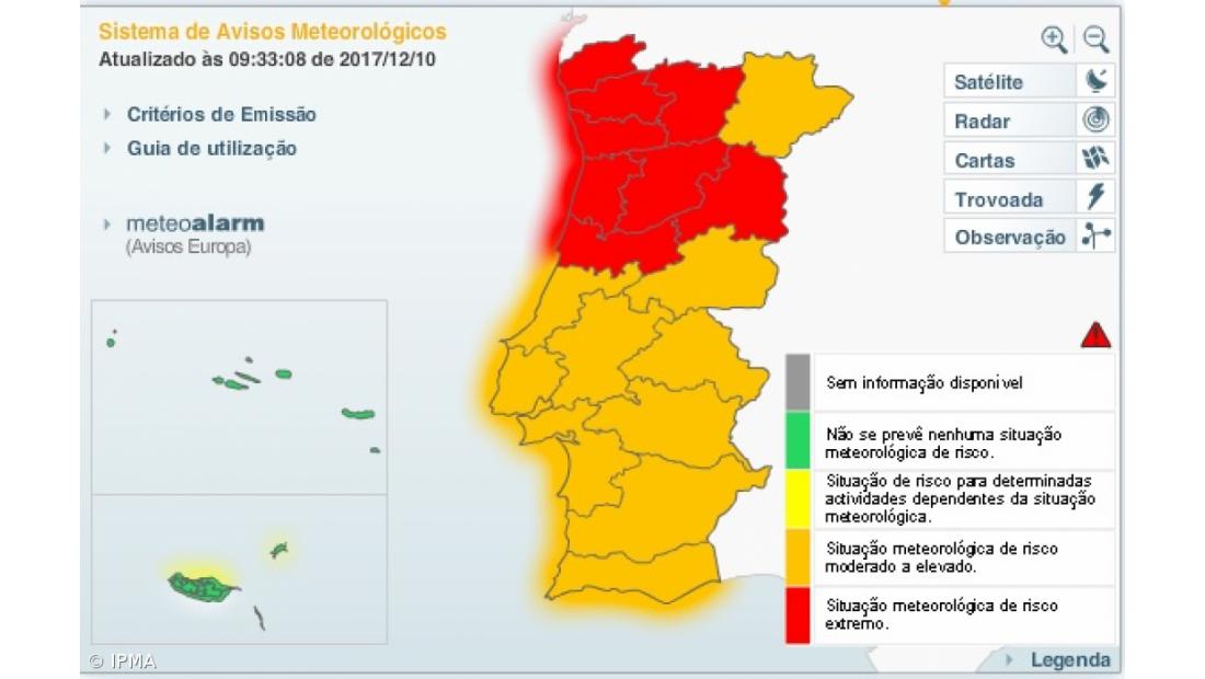 Os restantes distritos, de Évora, Coimbra, Faro, Setúbal, Santarém, Lisboa, Leiria, Beja, Portalegre e Castelo Branco, estão com aviso amarelo, o terceiro mais grave numa escala de quatro.