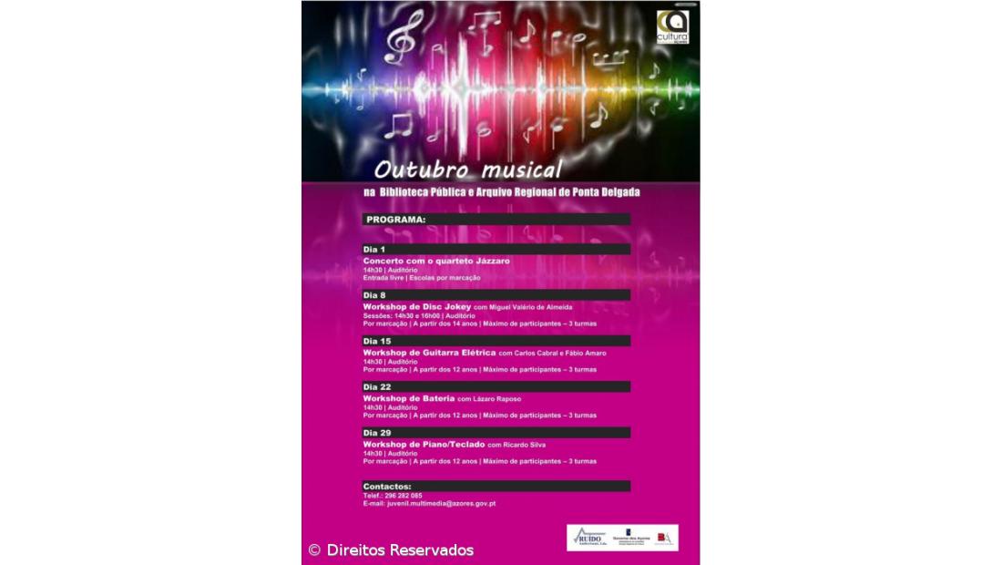 A iniciativa “Outubro Musical”, que resulta de uma parceria entre a Biblioteca Pública e Arquivo Regional de Ponta Delgada e a empresa Ruído Audiovisuais, encontra-se a promover uma série de iniciativas durante este mês.